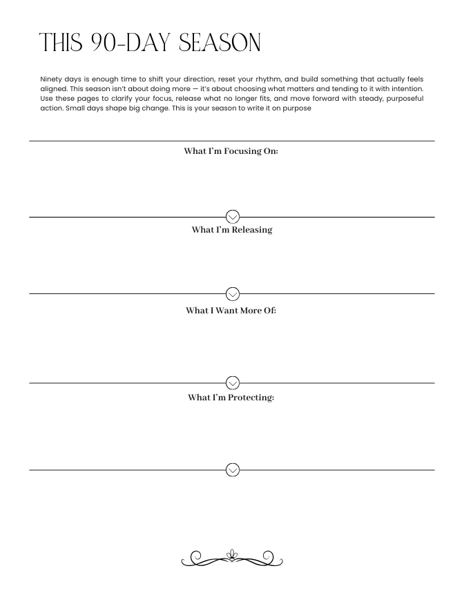 The Bossy Scribes 90-Day Planner is a structured 7"x9.25" 3-month planner designed for focused goal setting, intentional productivity, and measurable progress. Instead of overwhelming you with a full year of planning, this quarterly planner helps you break your vision into manageable 90-day seasons so you can execute with clarity and momentum.