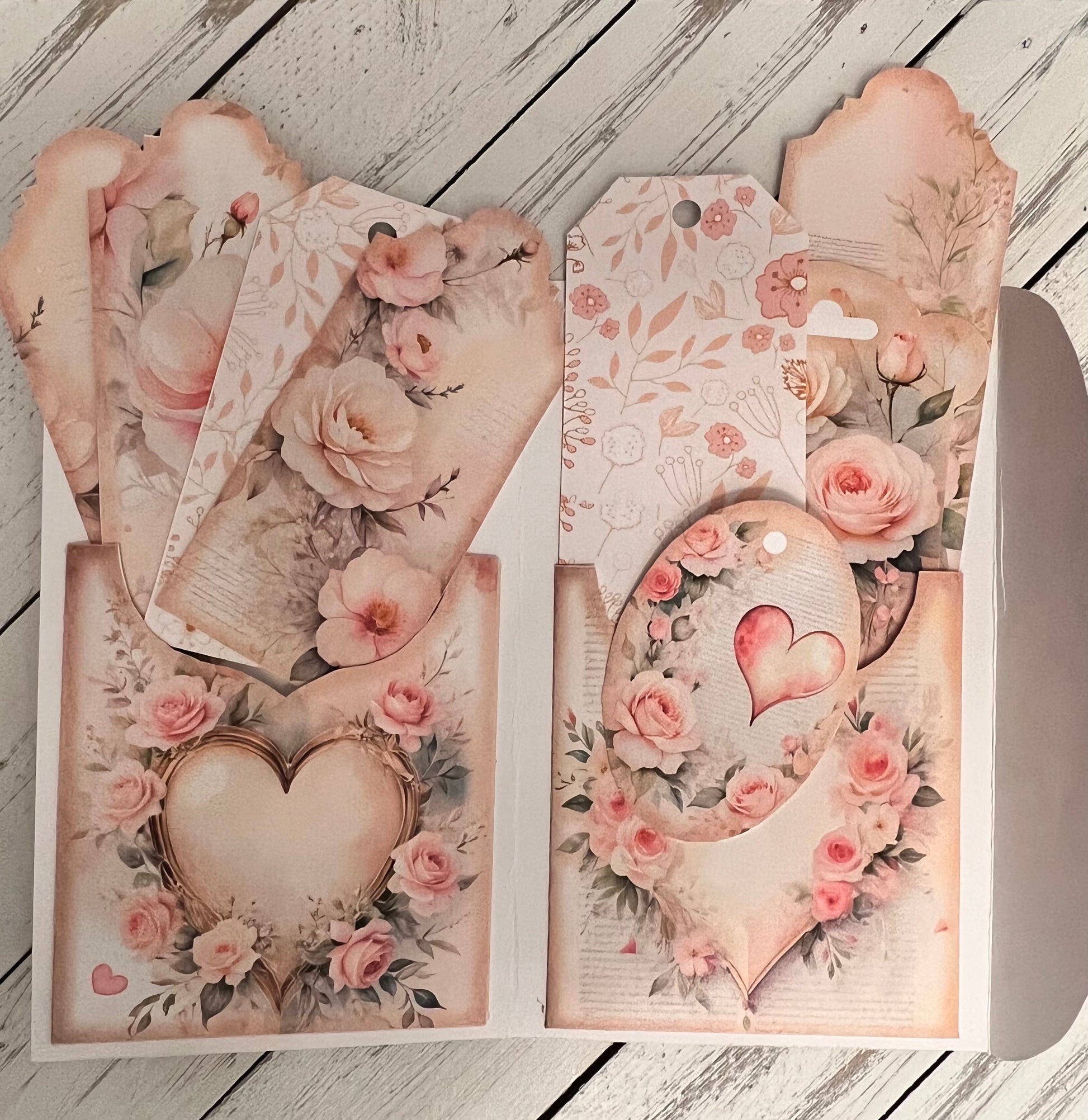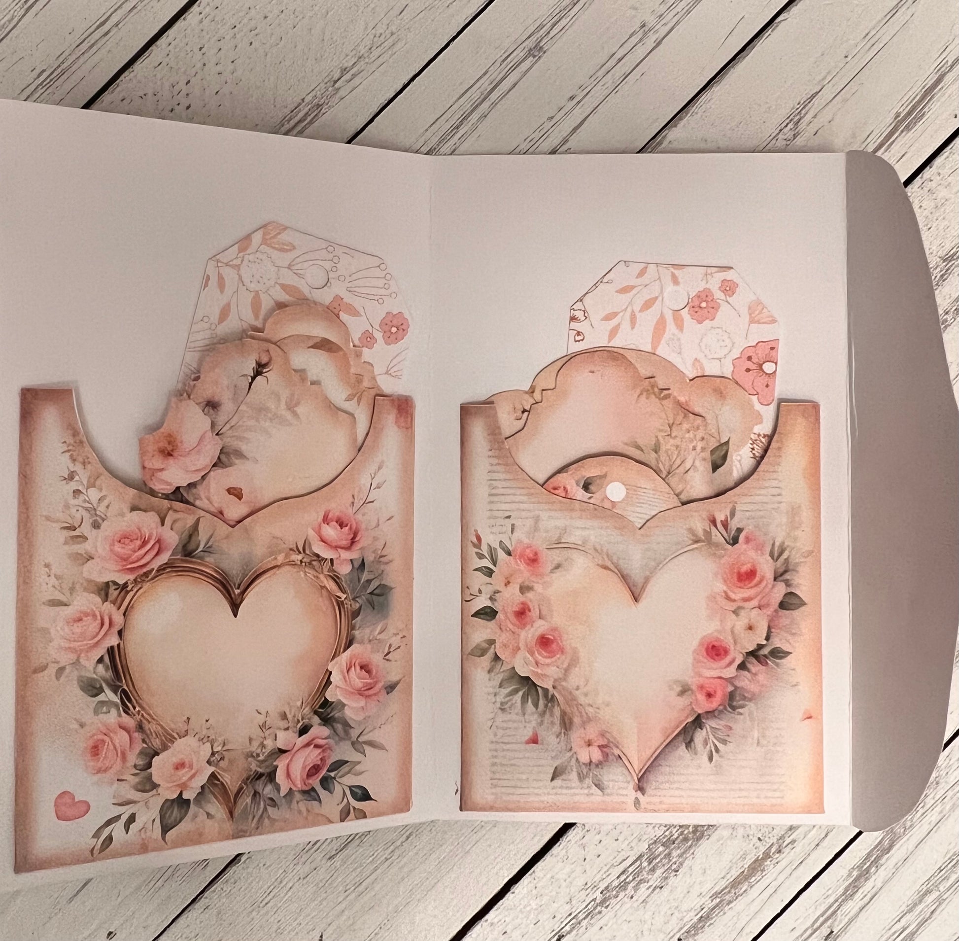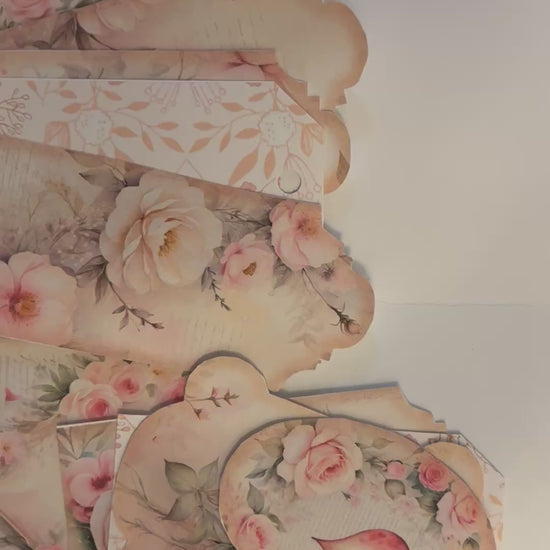 Handcrafted, fully assembled junk journal folio designed for art journals, altered books, and memory keeping. This completed folio features layered pockets, tuck spots, and built-in ephemera storage, ready to use right out of the box—no printing or assembly required. Perfect for junk journals, gothic journals, romance journals, black lace journals, and collector-style keepsake books. Approx. 4" x 6" (when folded) for each except for Black Lace which measures approximately 5" x 8".
